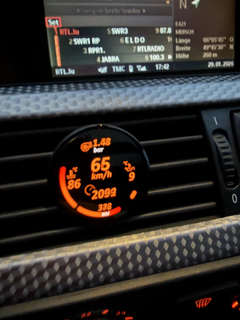 Das COREDISPLAY BMW Datendisplay ist ein hochwertiges Fahrzeugdisplay, das relevante Fahrzeuginformationen übersichtlich und stilvoll darstellt.